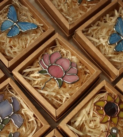 Романтична брошка у формі півонії, виконана вручну з ніжного рожевого скла у вітражній техніці Тіффані. Кожна пелюстка — це поєднання світла, кольору й тепла, яке оживає в жіночному образі. Півонія символізує любов, щастя та витончену красу — ідеальний акцент до вбрання або символічний подарунок.